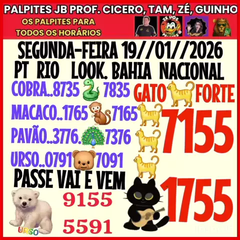 Segunda-feira 19//01//2026 jogo do bicho hoje