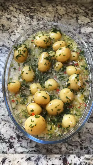 ✨ Batatinha em conserva deliciosa e fácil de fazer! 😋 Daquelas que ninguém consegue comer uma só! 👇 📝 Ingredientes: 🥔 2 kg de batatinha pirulito (cozida com sal) 🧅 2 cebolas picadas 🌶️ 3 pimentas dedo-de-moça picadinhas 🍃 2 folhas de louro 🧂 2 colheres (sopa) de sal 🫒 1 xícara de azeite 🍾 1 xícara de vinagre (da sua preferência) 💧 2 xícaras de água 🌿 Temperos a gosto Depois é só misturar tudo e deixar pegar sabor! 🤤 Perfeita pra servir com churrasco, petisco ou até sozinha! ❤️ #R