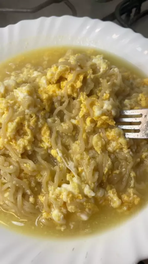 Miojo com ovo.