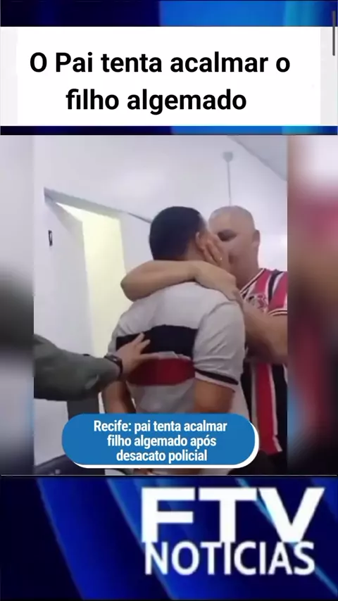 O pai tenta acalmar o filho algemado após desacatar policial