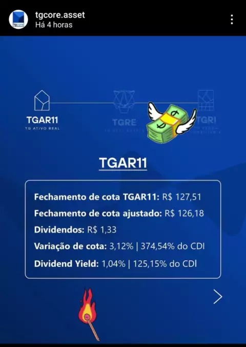 Divulgação de Rendimentos TGAR11. Me siga para mais informações. #brasil #fundoimobiliario #rendaextra #ganhardinheiro #investimento