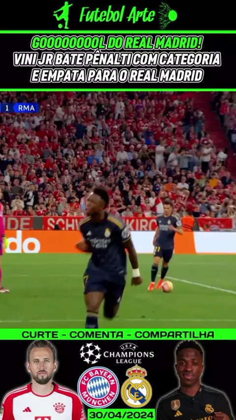 Gol do Real Madrid! Vini Jr bate pênalti com muita categoria e perfeição e deixa tudo igual #BayerndeMunique #ligadoscampeões #BayernxRealMadrid #esporteviral #RealMadrid