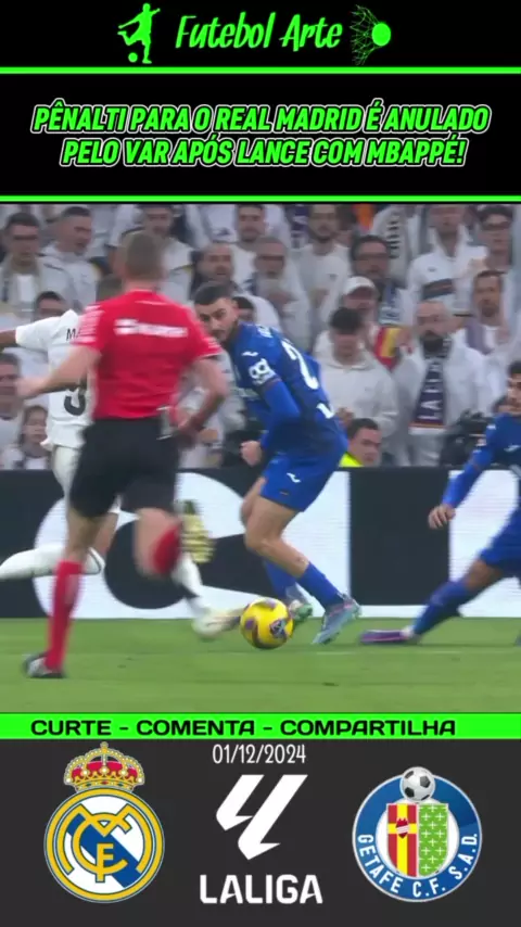 Pênalti para o Real Madrid é anulado pelo VAR após lance com Mbappé!#Realmadrid #RealMadridXGetafe #esporteviral #Esporte #laliga