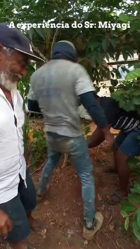 # senhor Miyagi colhendo mandioca