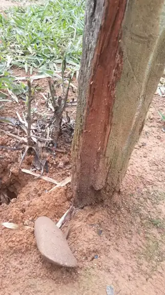 Local onde deceu raio observe o corte na madeira e o machadinho