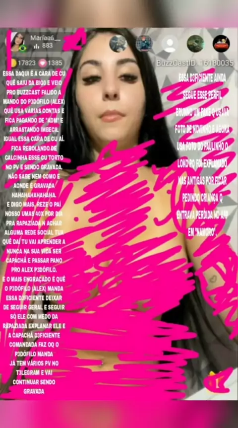 ESTE É O P3DØFILØ QUÊ FICA EM VÁRIOS APLICATIVOS DE LIVE PERSUADINDO MENINAS MENORES DE IDADE PRA IR PRO APP BUZZCAST E ELE GRAVAR A LIVE E DEPOIS FICAR CHANTAGEM, VAMOS ESPALHAR O MÁXIMO POSSÍVEL GALERA!! ELE MORA EM BRASÍLIA MAS É DE SALVADOR! COMO O APP NÃO PERMITE EU POSTAR ALGUNS PRINTS AQUI, ME CHAMEM NO CHAT QUÊ EU MANDO!