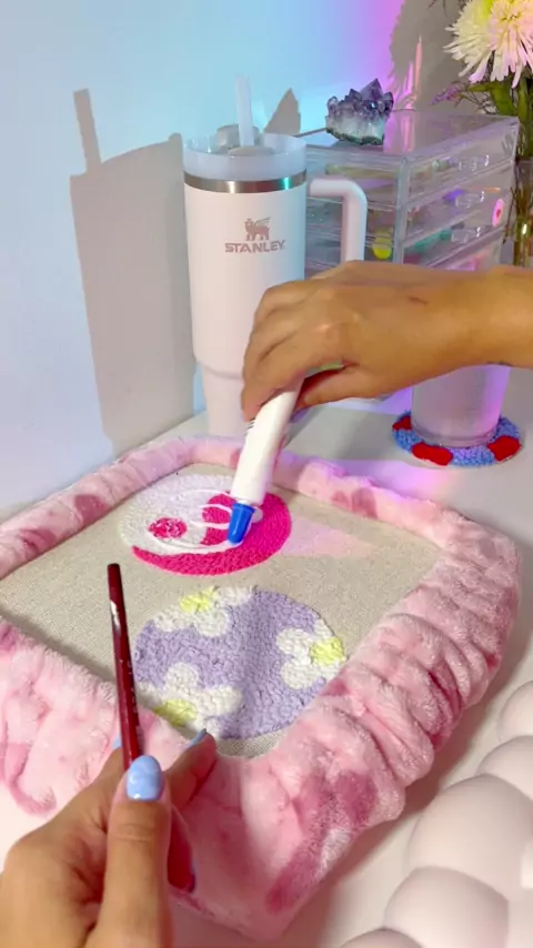 Uma das partes mais relaxantes do ponto russo 🩷 #bordado #bordadorusso #punchneedle #artesanato #croche