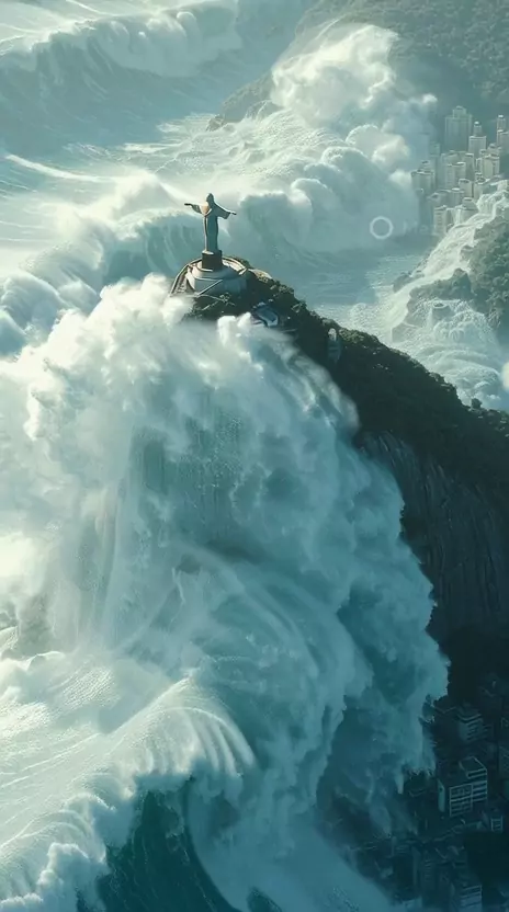Final dos tempos. Apocalipse no Rio de Janeiro. Ondas gigantes atingindo o Cristo RedentorFinalDosTempos #ApocalipseNoRio #OndasGigantes