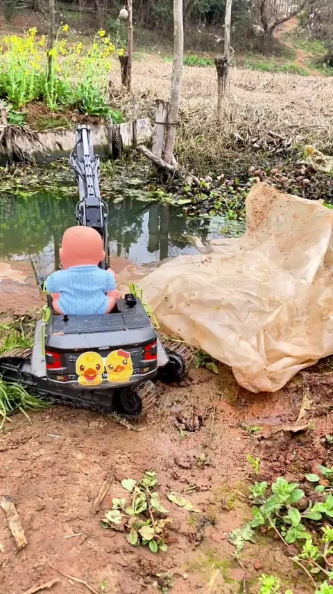 O escavador do bebê veio regar os vegetais. # Escavadeiras das crianças cavam o vídeo da terra 0, 1, 2, 3, 4, 5, 6-year-old vídeo dos desenhos animados do brinquedo da educação infantil