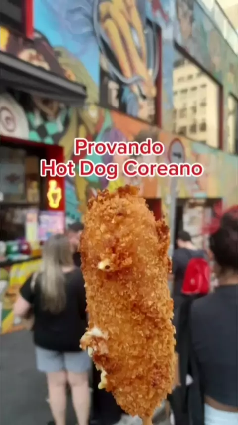 Provando o cachorro-quente coreano na Liberdade #comidacoreana #sp #experimentando #hotdog #saopaulo Más