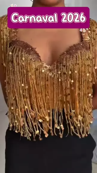 ✨ Faça você mesma ✨ Top dourado com franjas pra brilhar no Carnaval 🔥 Criativo, poderoso e do seu jeito. Quem vê, se apaixona! #FaçaVocêMesma #DIY #Carnaval #modacriativa #ModaCriativa