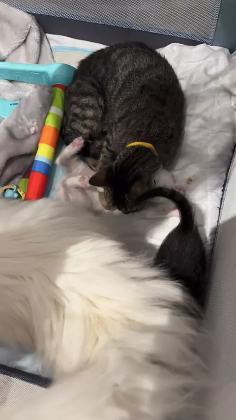 Momento mais esperado do dia: hora do mamá com muito amor e ronroninhos 💛🐾 #HoraDoMama #VilmaEMamãe #GatinhosFelizes #AmorFelino