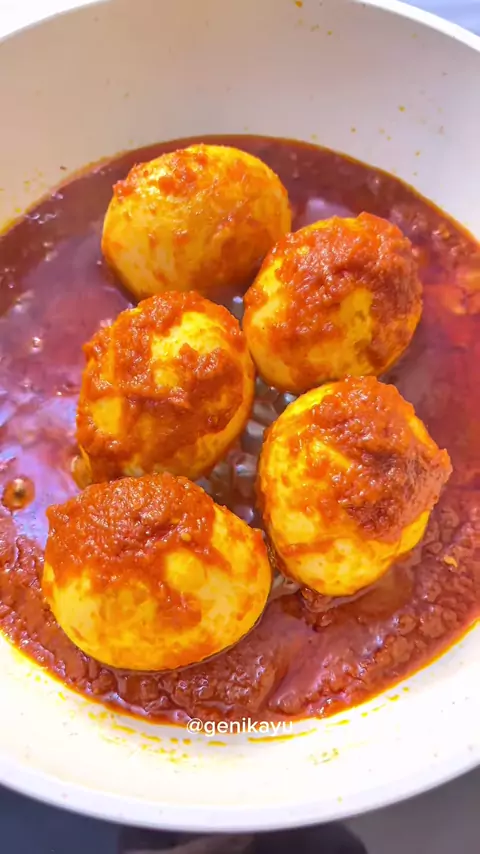 Telor Balado satset… resep satset chef rudy recook @genikayu bumbu dihaluskan : 8 bawang merah 1 buah tomat bahan di larutkan : 1 sachet Desaku Balado 250 ml air bahan 3 : 5 sdm minya goreng 5-8 telur rebus 1/2 sdt garam 1/2 sdt gula . . . . .#telorbalado_satset#telorbalado#balado#resepsambal#masakanrumahan#resepsimple#resepmasakan#cookingvideo#makansiang
