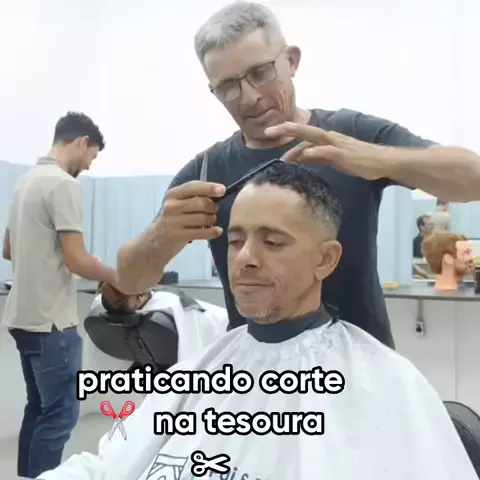 praticando corte com tesoura βοΈ no colega e aluno de curso de barbeiro , #resitrodevidas viver da barbearia π