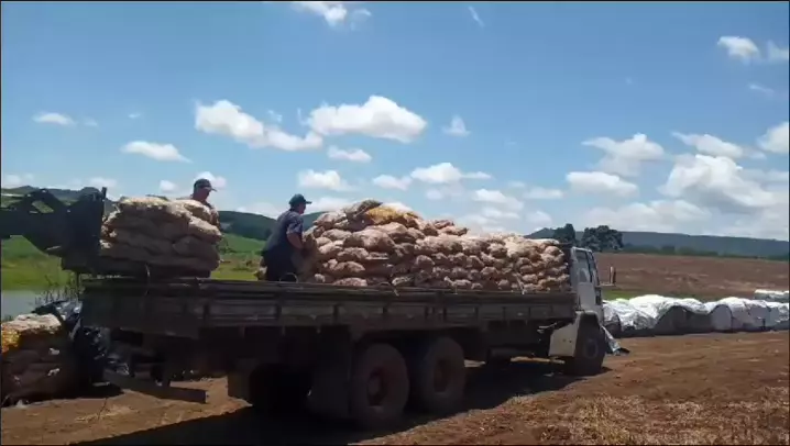 Carregando mais uma carga de cebola. Essa tarefa é para os fortes.