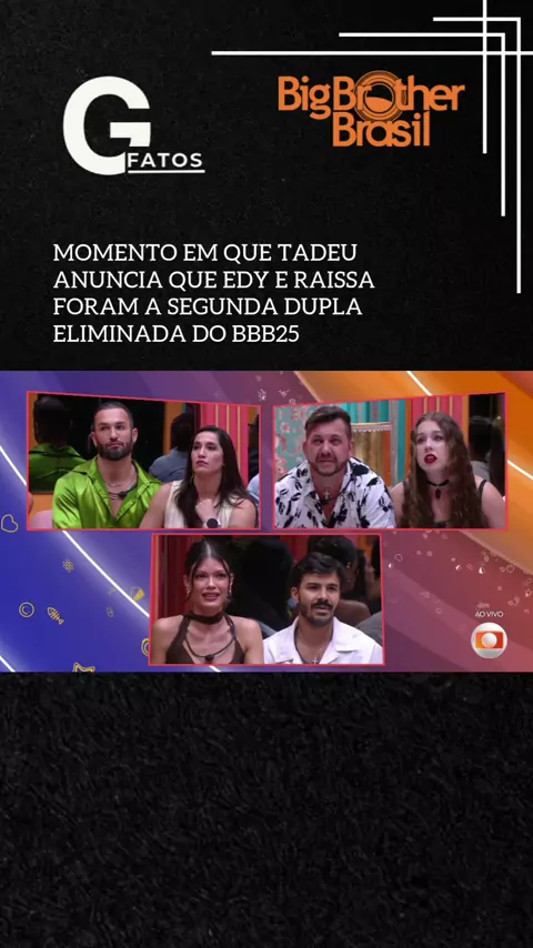 🚨 Eliminação no BBB 25! Nesta terça-feira (28), Edilberto e Raíssa foram eliminados no segundo paredão da temporada. A dupla disputou a permanência contra Daniele e Diego Hypólito, e Vitória Strada e Mateus. Quem será o próximo alvo na casa? 👀 #bbb25 #fofoca #famosos 🎥 Reprodução: X / Big Brother Brasil #batevoltakwai #festakwai