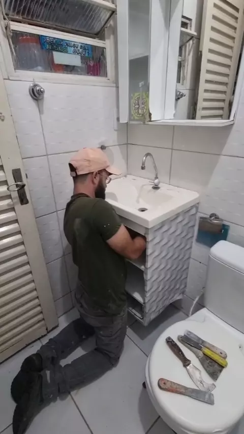 Pia com armário de porcelanato A nova queridinha da galera #pias #piadebanheiro #armáriodebanheiro #piadeporcelanato