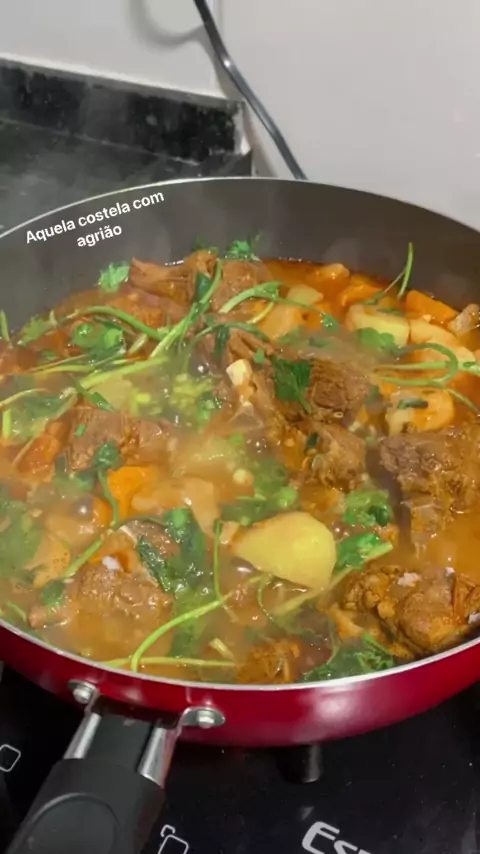 Quem não gosta daquela costela com agrião e legumes. Bora almoçar? #comida#almoço#