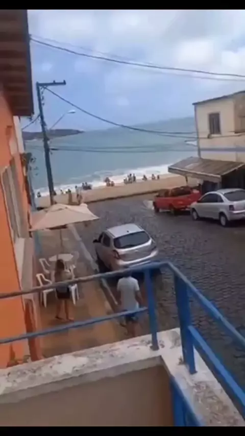 π΄ Onda aremesa banhistas na praia #Praia #acidente #fy
