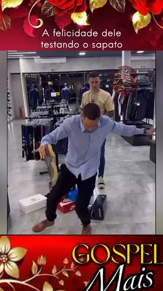 A felicidade dele testando o sapato
