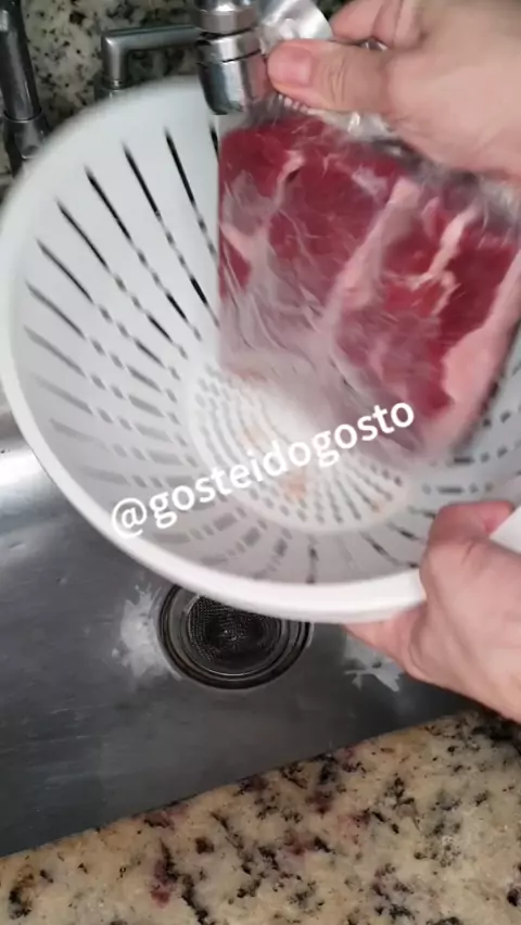 Dessalgando carne seca rapidamente Lave bem em água corrente, coloque na pressão com bastante água por 30 minutos. #carneseca