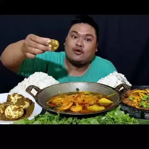 Mkbang Udang Gulai,Pindang Telor Rendang, Sambal Mangga(cr : Mangcek Usman)#mangcekusman#mukbang##udanggulai#mukbangvideo#mukbangeatingshow#