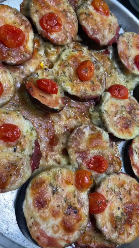Da série petiscos viciantes, hoje essa receitinha de pizzinha de berinjela! 1 berinjela, sal a gosto, molho de tomate, queijo, tomate cereja, orégano e um pouco de azeite, leve ao forno por uns 10 min a 200Cº, na airfryer pode ser tbm por esse tempo, eu coloquei por 15 min mas pode ser por 10. Retire do forno e parte para o abraço, para quem gosta quando começa a comer não quer parar mais… 🤌🏼🤌🏼🤌🏼 Siga para mais receitas.#receitas #food #cucina #cozinha
