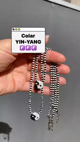 Colar de miçangas com pingente yin-yang feito à mão 🖤🤍 #artesanato #miçangas #dicas #colares #equilibrio