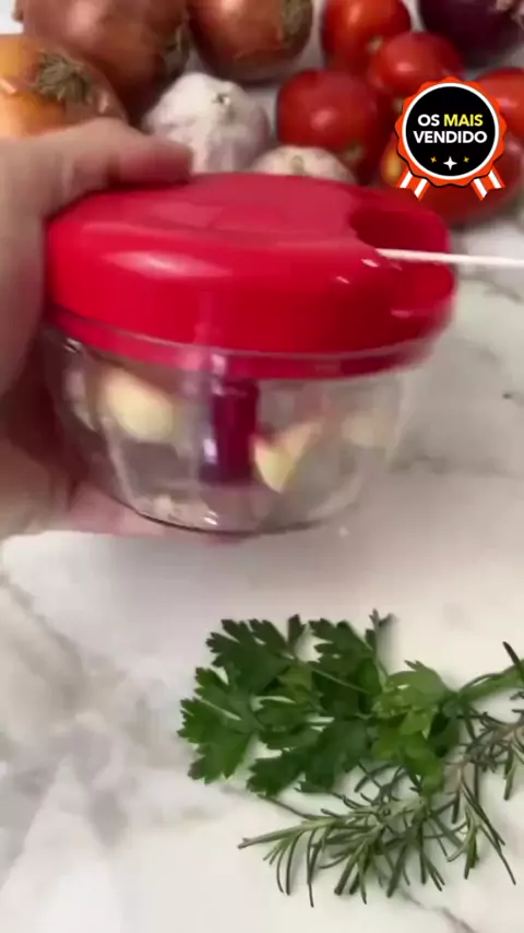 #Mini Processador Manual de Alimentos Triturador 3 Lâminas Multifuncional Alho Legumes 500ml