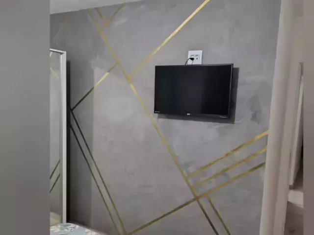 Aplicação de efeito cimento queimado com faixas douradas, lindo demais 🤩 #cimentoqueimado #designdeinteriores #efeitos #kwai #Sdv