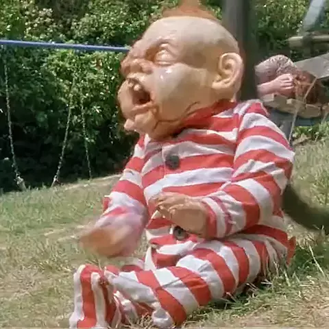 O bebê demônio voou da gangorra kkk