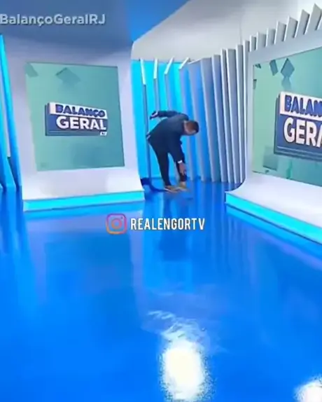 Tino Junior quase caiu durante o início do Balanço Geral RJ #AquiGeralBrilha #pascoanokwai #balançogeralrj #nacaobrfla #tinojunior