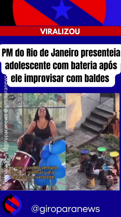 Linda atitude de PM do Rio , foi digna de aplausos quando viralizada após um grupo de polícias de um batalhão no Rio de Janeiro , presentear um jovem com uma bateria musical , uma vez que ele ensaiava por tempos com baldes.👏👏 #noticia #viralizou #policiamilitar #riodejaneiro