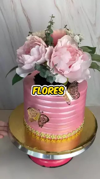 bolo rosa com flores #bolo #flor #Comida #bolodecorado #confeiteira المزيد