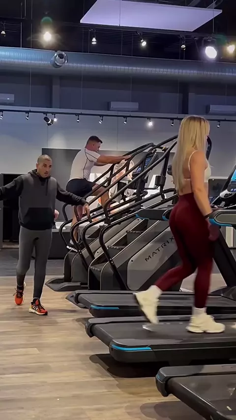 "Desastre no ginásio! O sujeito tenta usar a esteira, mas acaba tropeçando e caindo de forma hilária!" #gymfail #gym #kwai #viral #fyp