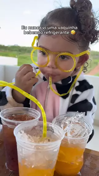 E essa vaquinha bebendo refri? 🤣 comenta pra parte 2! #refri #provando #Helena #Criança #bebe
