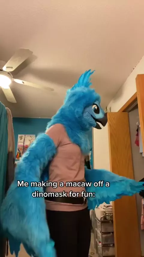 I like it tho#furry#fursuit#fursuitmaker#youngfurry#dinomask#dinomaskfursuit#furriesof#furryfandom#macaw#bluemacaw#fursuithead#