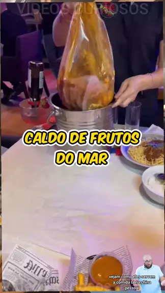 servindo caldo de frutos do mar em saco de plástico