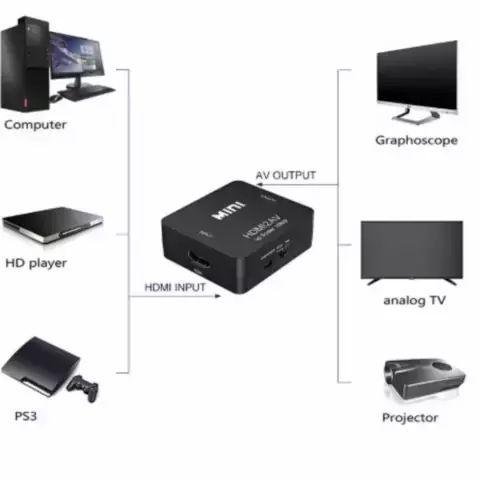 Mini Conversor Hd Vídeo Hdmi X Av Rca Hdmi2av Av2hdmi
