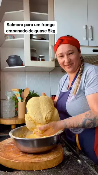 Frango assado em clima natalino Ingredientes 3 litros de água 4 colheres de sobremesa de sal 1 cebola 6 dentes de alho 2 folhas de louro Essa salmora é para um frango de ate 5kg Deixar o frango de um dia para o outro na salmoura Temperos usados no dia seguinte 4 colheres de sopa de mostarda 1 colher de sobremesa de páprica defumada 1 colher de sopa de chimichurri Pimenta do reino a gosto Empanar no fubá amarelo Assar por 2 horas e meia a 180graus depois tira o papel pra dourar