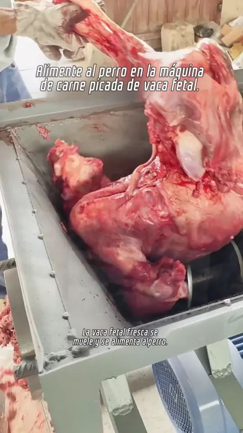 La m谩quina picadora de hueso de cerdo aliment贸 al perro con el ganado fetal de peces.