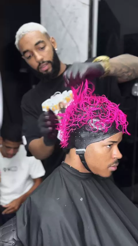 Ele pintou de rosa pro natal π π½π #Natal #cabelo #luzes