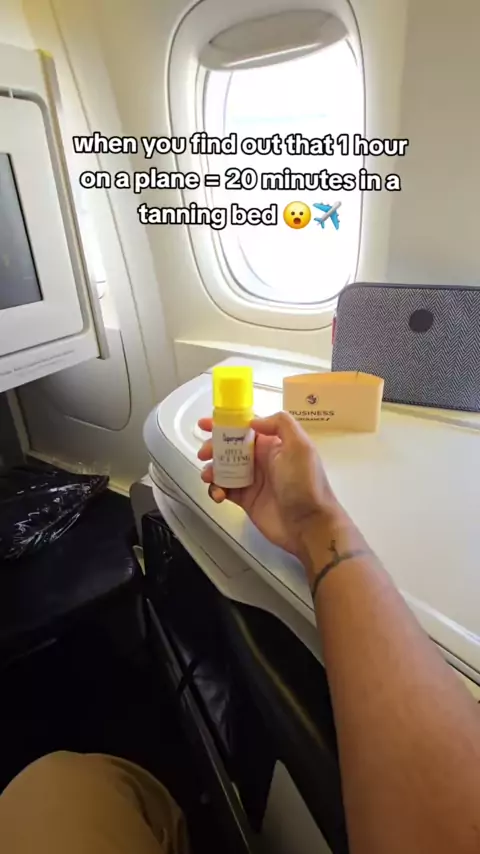 You got 59 mins to enjoy the view before I close the window π€£ I just recently read that 1 hour in an airplane with the sun beating down on you through a window at 30,000 feet is equivalent to 12-20 minutes in a tanning bed. Y'all be safe there! Wear your SPF π @Supergoop#spf#sunscreen#tanning#SkinCare101#inflightskincare#travelskincare#clearskintips#supergoop