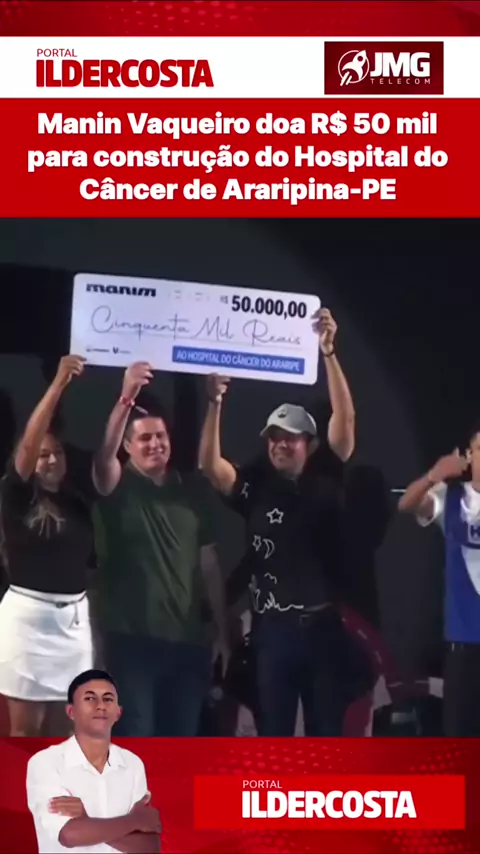 O cantor Manin Vaqueiro emocionou o público durante sua apresentação nas festas juninas de Araripina, ao anunciar uma generosa doação de R$ 50 mil para a construção do Hospital do Câncer da região. O ato solidário aconteceu quando o artista se apresentou diante de uma multidão em um dos maiores eventos juninos do município. A doação foi recebida com aplausos calorosos e vibrante apoio dos fãs e habitantes da cidade.