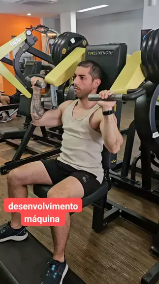 #DesenvolvimentoMáquina: #Exercício para deltoide, ótima opção para iniciar o #treino, pois, existe a possibilidade de utilizar uma carga alta, gerando assim um estímulo tensional induzindo a hipertrofia. É importante o cuidado com o movimento, manter cotovelo abaixo da linha do punho e empurrando para cima. #dicadetreino #academia