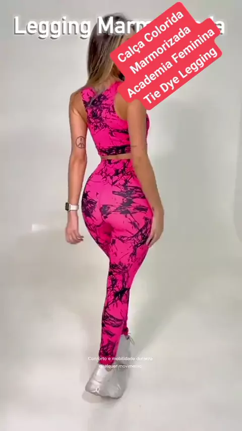 Calça Colorida Marmorizada Academia Feminina Tie Dye Legging #modafitness #AFazenda17