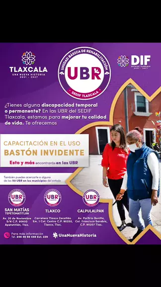 🩼 ¿Tienes alguna discapacidad temporal o permanente? En las Unidades Básicas de Rehabilitación del SEDIF Tlaxcala te capacitamos en el uso de bastón invidente 🧑🦯terapia de lenguaje, servicio de hidroterapia y más Acércate a alguna de las 50 #UBR distribuidas en los municipios del estado o comunícate al ☎ Teléfono: 246 46 50 440 #UnaNuevaHistoria de Inclusión ♦️ #GobiernoDeTlaxcala