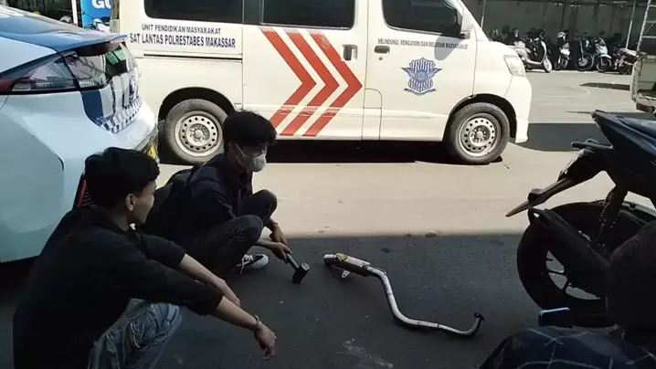 knalpot brong atau bising dihancurkan pemiliknya setelah ditangkap polisi..yakin tidak ikhlas #videoviral #makassar #polrestabesmks #knalpot