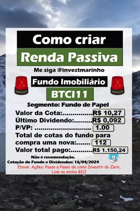 Renda Passiva com dividendos pagos mensalmente pelo Fundo Imobiliário BTCI11. #investimentos #dinheiro #educaçãofinanceira