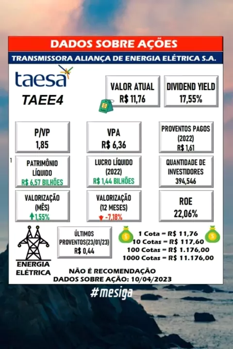 Dados sobre a ação da TAESA. #investimentos #bolsadevalores